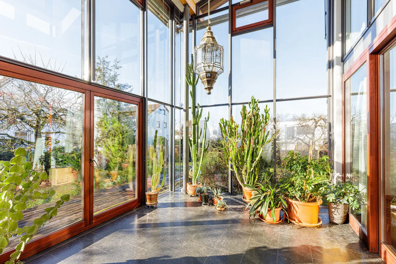 Durch die Glastür betreten Sie den weitläufigen Wohnbereich. Hohe, nach Süden ausgerichtete Glasfronten hüllen den Raum in natürliches Licht und schaffen eine warme, offene Atmosphäre. Dieses offene Raumgefühl setzt sich im gesamten Haus fort und vermittelt ein Gefühl von Freiheit. Rechts vom Eingangsbereich gelangen Sie in das Esszimmer mit angrenzender, hochwertig ausgestatteter Küche, die keine Wünsche offenlässt. Hinter der Küche befindet sich ein praktischer Vorratsraum, der zusätzlich auch von außen zugänglich ist – ideal, um Einkäufe direkt zu verstauen. Anschließend öffnet sich das großzügige Wohnzimmer, das dank der Glasfronten ebenfalls viel Tageslicht erhält und zum Verweilen mit Familie und Freunden einlädt. Vom Wohnzimmer aus gelangen Sie in den Wintergarten, der sich perfekt als Ihre persönliche grüne Wohlfühloase eignet.