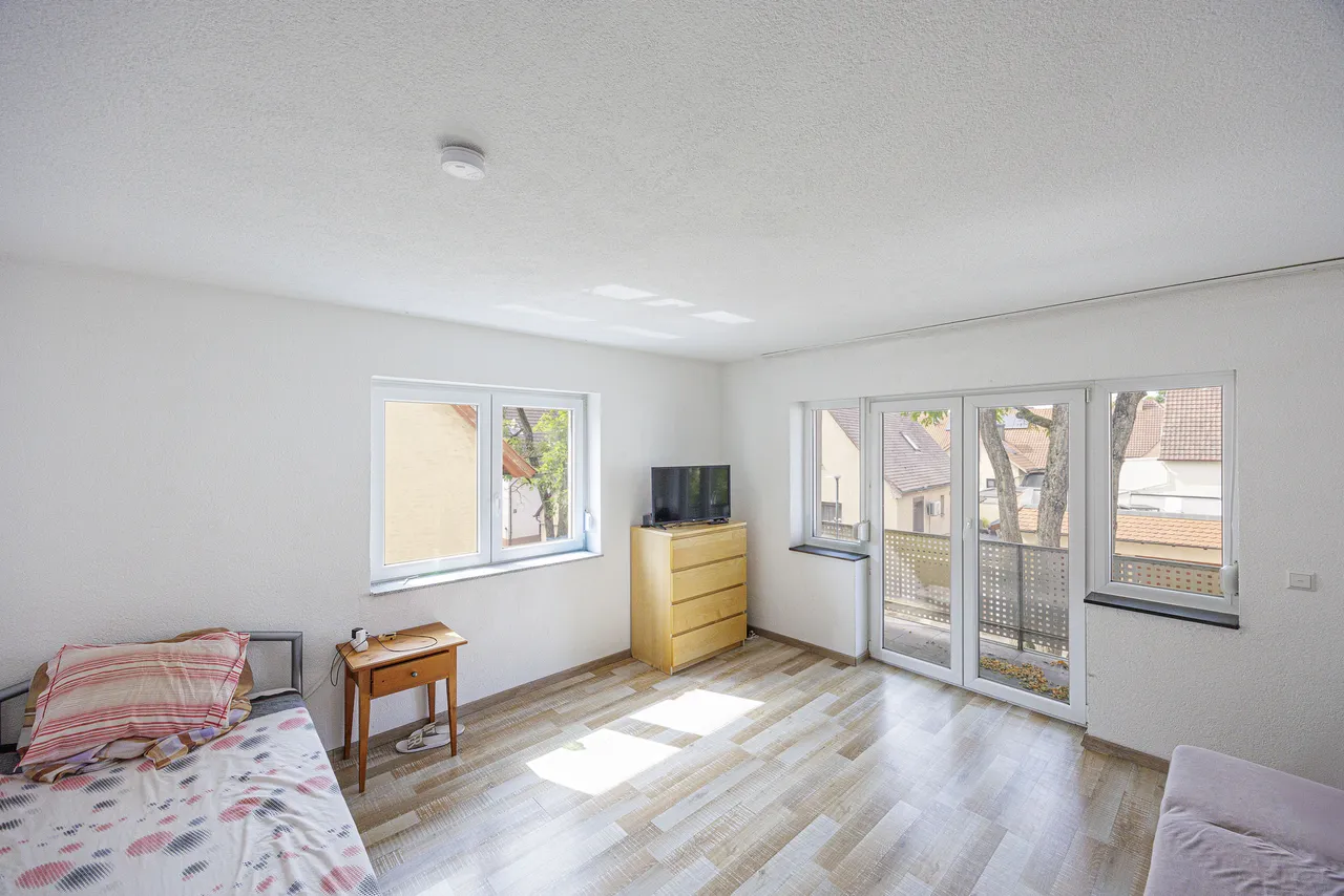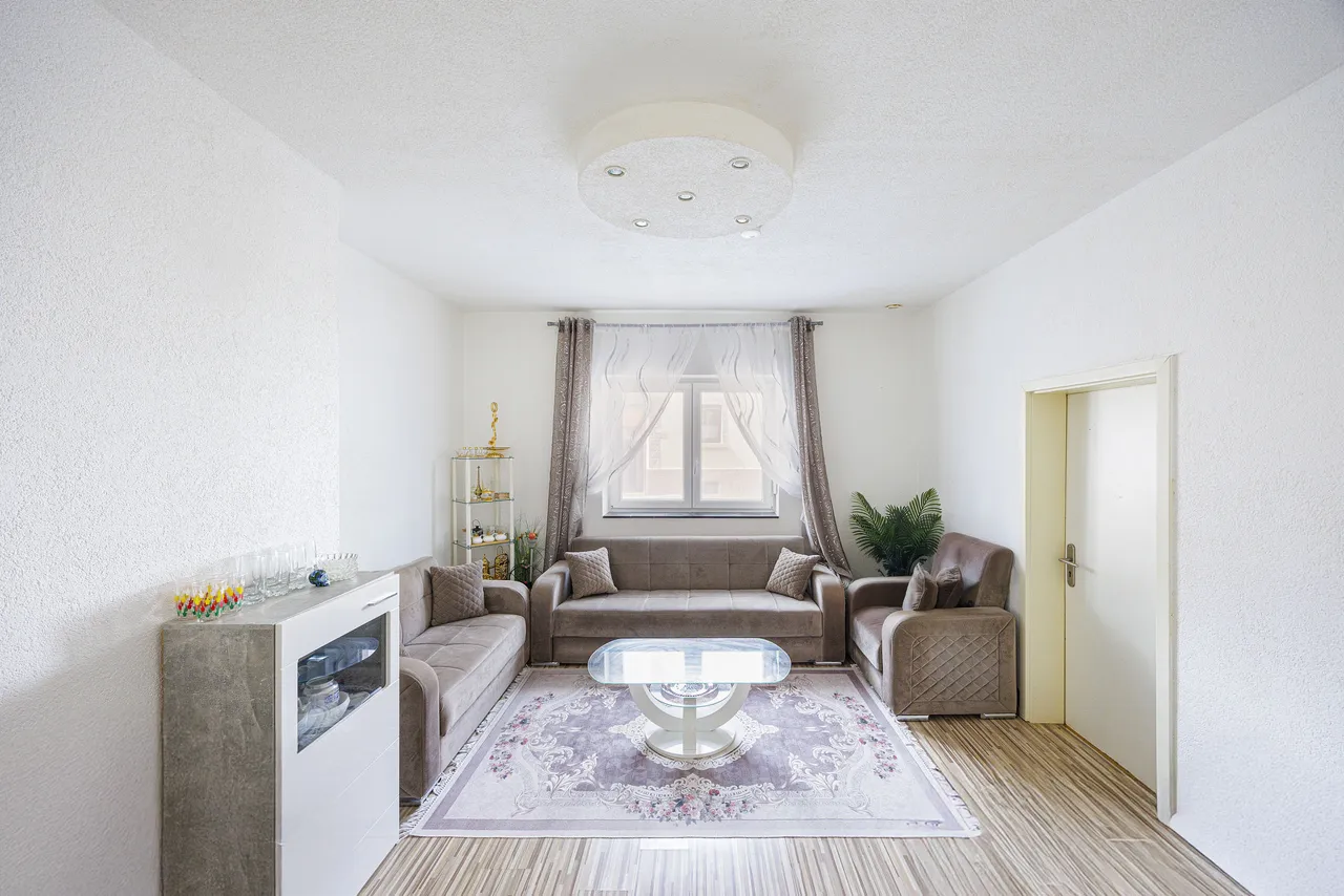Die Gesamtwohnfläche beträgt ca. 158 m², verteilt auf drei abgeschlossene Wohneinheiten. Das Haus ist aktuell vollständig vermietet und erzielt eine monatliche Kaltmiete von insgesamt 2.200 €. Die Wohnung im ersten Obergeschoss wird jedoch zum 1. September frei und eröffnet damit die Möglichkeit zur Eigennutzung oder zur Neuvermietung zu marktgerechten Konditionen.