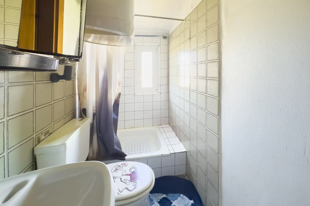 Das Erdgeschoss gliedert sich in zwei separate Einheiten: eine eigenständige Gewerbeeinheit, die derzeit als Atelier genutzt wird, sowie eine angrenzende Wohneinheit mit separatem Zugang. Das Atelier besteht aus zwei großzügigen, lichtdurchfluteten Räumen und einem eigenen WC – ideal für kreative oder freiberufliche Tätigkeiten. Die benachbarte Wohnung bietet ein Wohnzimmer, ein Schlafzimmer, ein Kinderzimmer, eine Küche mit Zugang zu einer großzügigen Speisekammer sowie einem angrenzenden Abstellraum. Ein Badezimmer und ein separates WC vervollständigen das familienfreundliche Raumangebot.