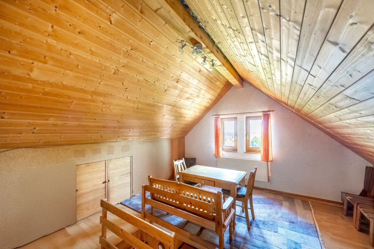 Diese Immobilie vereint traditionelle Bauweise mit funktionaler Planung, stilvoller Gestaltung und außergewöhnlichem Wohncharakter. Kamin, Holzelemente, offene Strukturen sowie die vielfältigen Ausbaureserven im Spitzboden und Untergeschoss machen dieses Haus zu einer besonderen Gelegenheit – ein Zuhause, das sowohl Entwicklungsspielraum als auch Geborgenheit bietet.