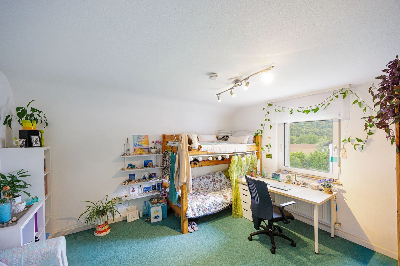 Zusätzlich stehen zwei weitere, wohnwirtschaftlich ausgebaute Räume zur Verfügung, die maximale Flexibilität eröffnen. Ob als Homeoffice für konzentriertes Arbeiten, als Gästezimmer, Hobbyraum oder großzügiges Jugendzimmer – hier haben Sie die Freiheit, Ihre Wohnideen individuell umzusetzen und an den Lebensstil Ihrer Familie anzupassen. Ein großzügiges Familienbad mit Badewanne rundet das Obergeschoss ab und bietet den idealen Rahmen für einen komfortablen Alltag.